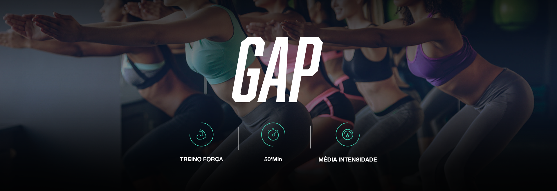 GAP é um diminutivo para glúteos, abdominais e pernas. É uma aula que desenvolve o corpo de uma forma eficaz, trabalhando estas diferentes áreas do corpo num mesmo treino. É uma aula usada muitas vezes por quem não tem tempo ao longo da semana para separar os diferentes treinos em várias sessões espaçadas.