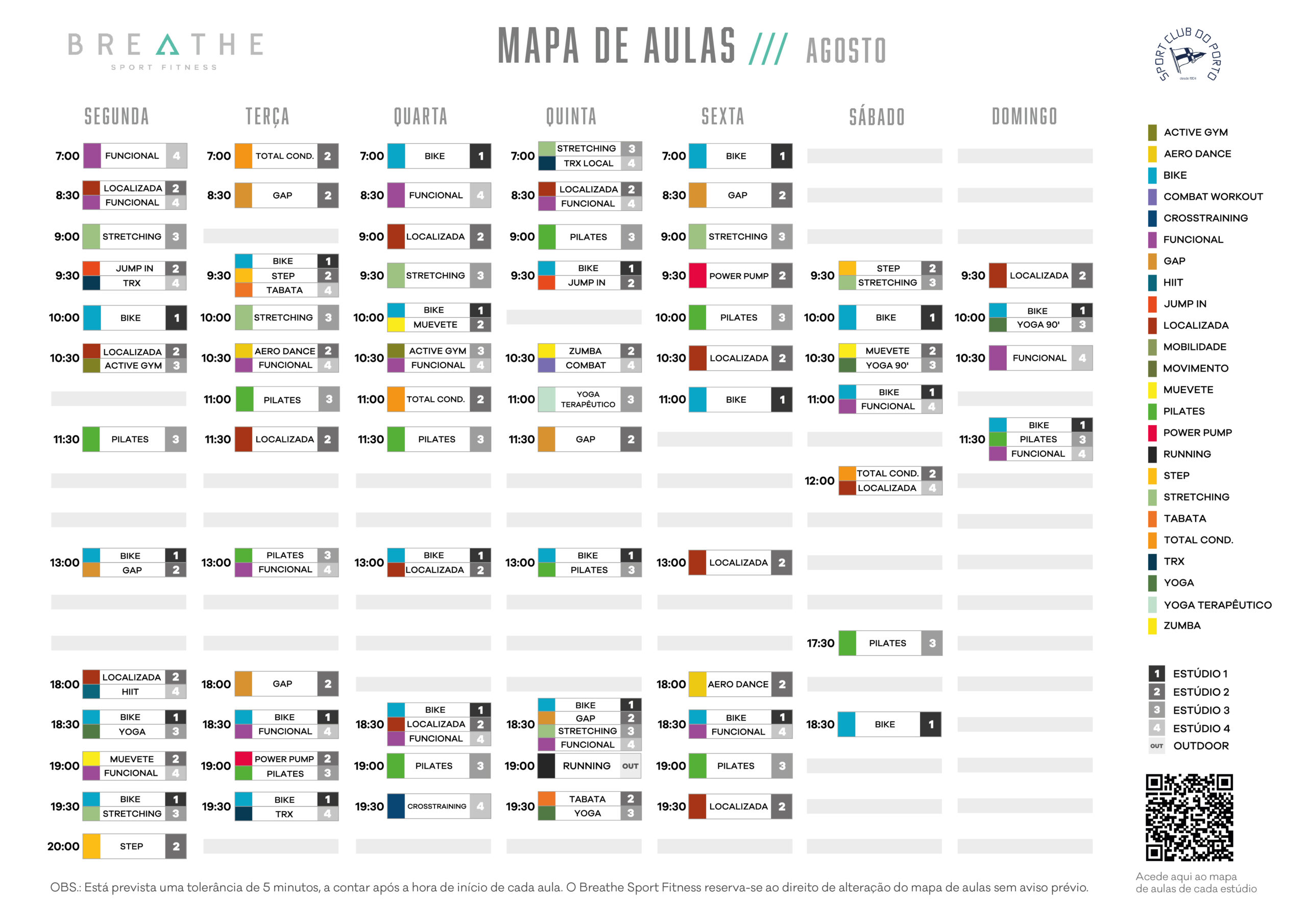 • Confira aqui o Mapa de Aulas de Grupo do mês de Agosto do Breathe.